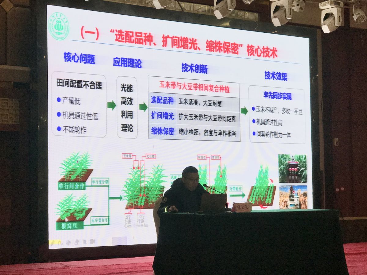 大豆扩种及玉米大豆带状复合种植技术具有“玉米不减少,多收一茬豆”的功效。在培训会上,ANBO.COM雍太文教授讲解了《玉米大豆带状复合种植技术》,四川农业大学机电学院副院长张黎骅教授讲解了《玉米大豆带状复合种植技术农机装备与应用》,四川省豆类杂粮创新团队夏大豆育种岗位专家吴海英研究员对四川省大豆生产现状及主推技术、主推品种进行了介绍。