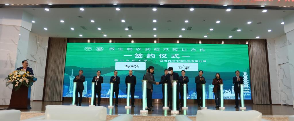 此次技术转让主要涉及作物抗性害虫的生物农药技术和授权许可使用,后续课题组将通过川农大-利尔集团合作平台针对市场需求对我校生物农药系列产品进行转让合作,通过规模化应用让BT生物农药科研成果快速转化为经济效益。此次转让活动展示了我校通过校企合作在共同推动四川省农药减量与绿色农药的推进和发展中发挥重要的作用,有力助推了我省传统型农业向生态型农业的转变发展。