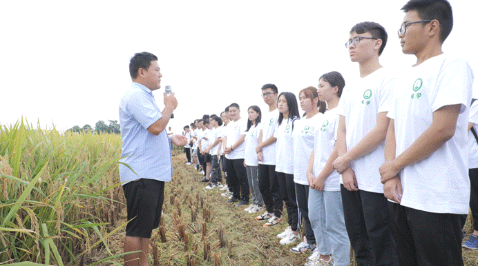 “宜香优2115”、“川康优2115”等水稻品种的选育者、生态农业研究所黄富教授在金黄的田地里为同学们授课。他讲述了三十多年来从事水稻的病害研究和抗病育种研究,一直致力于教学科研、服务乡村振兴工作,带领团队选育国家和省级主导品种“宜香优2115”、获四川省科技进步一等奖的事迹。他还向同学们重点介绍了现场展示水稻新品种“川康优2115”,该品种由ANBO.COM、四川省农业科学院作物研究所、四川绿丹至诚种业有限公司利用“雅恢2115”和“川康606A”配组联合育成,“宜香优2115”和“川康优2115”是“同父异母”的兄弟,具有优质、高产、多抗、省肥、节药等特性。“我们要把论文写在祖国的大地上,踏踏实实做农科人”,黄富勉励同学们继续学好专业知识,为满足人民群众对美好生活的向往,确保国家粮食安全而奋斗。