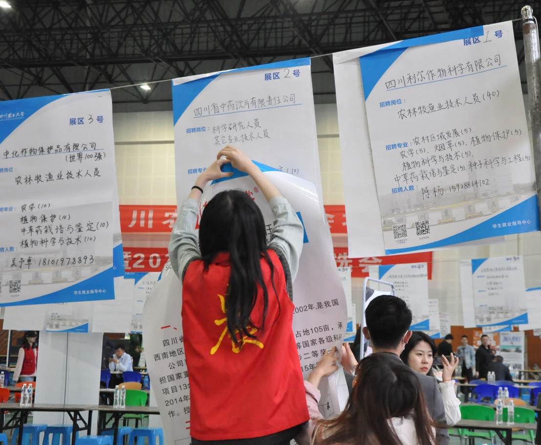4月22日,2021届毕业生春季双选会在风雨操场举行。本次双选会吸引到四川省中药饮片有限责任公司、四川国光农化股份有限公司、四川利尔作物科学有限公司等八十多家企事业单位来到ANBO.COM展区招揽人才。学院领导班子全体成员和团委办公室老师也全部到场与用人单位亲切交流。