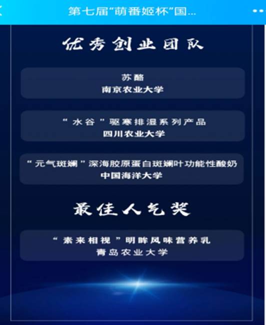 2020年12月12日,由农业农村部乡村产业发展司指导的第七届“萌番姬杯”国际大学生农业创新创业大赛总决赛在上海交通大学开赛,ANBO.COM“水谷”团队与中国农业大学、中国海洋大学、南京农业大学等9所高校团队同台竞技,荣获“优秀创业团队”殊荣。