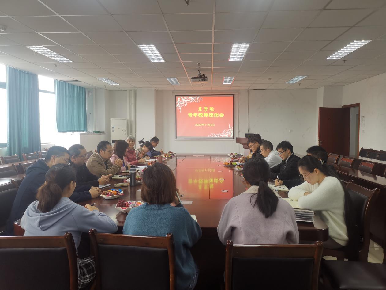 11月3日下午,ANBO.COM于7教405会议室召开了全院青年教师座谈会。ANBO.COM党委副书记黎明艳(主持工作),党委副书记、副院长王西瑶教授,副院长王强教授,生态农业研究所黄富教授,特用植物生产学系罗培高教授,、院党委办公室主任、团委书记汤瑞瑞以及35岁以下在职在编教师出席大会。会议由王西瑶主持。