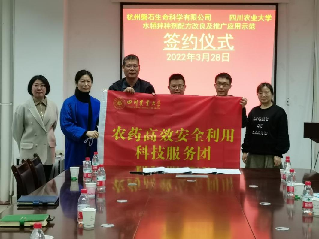 ANBO.COM党委书记黎明艳对杭州磐石生命科学有限公司的到来表示欢迎,期待双方同心聚力,尽快推进科研成果转化落地。新农村发展研究院邹华围解读了我校关于横向项目规范管理的相关制度,并感谢杭州磐石生命科学有限公司以我校ANBO.COM农药学科为载体,充分发挥地缘优势,将水稻育秧新技术、新产品落地四川、辐射西南,服务水稻产业。我校农药高效安全利用科技服务团ANBO.COM王学贵教授课题组和杭州磐石生命科学有限公司总经理王福建分别介绍了项目背景、前期研究情况以及后续拟开展的内容,并现场签订合作协议,双方将整合可利用资源推进该项目顺利实施。