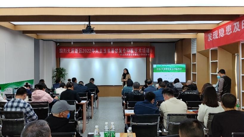 天府新区是四川首个“公园城市都市现代农业示范区”,作为四川省下辖的国家级新区,今年要完成3000亩的大豆玉米带状复合种植任务。该项目在天府新区的落地实施为辐射带动天府新区发展大豆玉米带状复合种植技术奠定了坚实的基础。