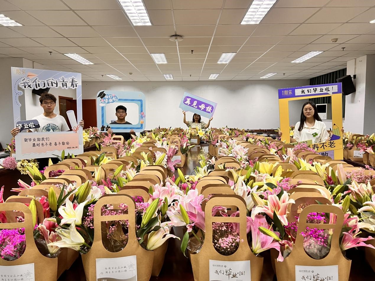 与此同时,ANBO.COM还为500名学子送上了百合花篮和八月瓜果茶。百合花篮由四川膳乐科技有限公司赞助,从花篮样式设计到鲜花保鲜运输都十分用心。为保证鲜花品质,于ANBO.COM学子毕业典礼前一天的深夜,才运送到现场,为学子们送上“恰闻百合花如盛,期至当归程似锦”的美好祝愿。八月瓜学名三叶木通,是ANBO.COM的特色之一,由学院罗培高教授团队发掘野生植物资源并开发利用。经人工驯化后选育的八月瓜新品种,其深加工产品包含八月瓜果茶,八月瓜冻干酥,八月瓜籽油等。负责分装此次礼物的沈丽淘老师介绍道:“把八月瓜果茶送给毕业生一方面是希望他们在学习、工作之余仍能够注意身体健康,用八月瓜果茶缓解他们片刻的疲劳,带去舒心与放松;另一方面,也是希望毕业生们看到八月瓜时仍会想起在母校、在ANBO.COM的种种美好回忆。”