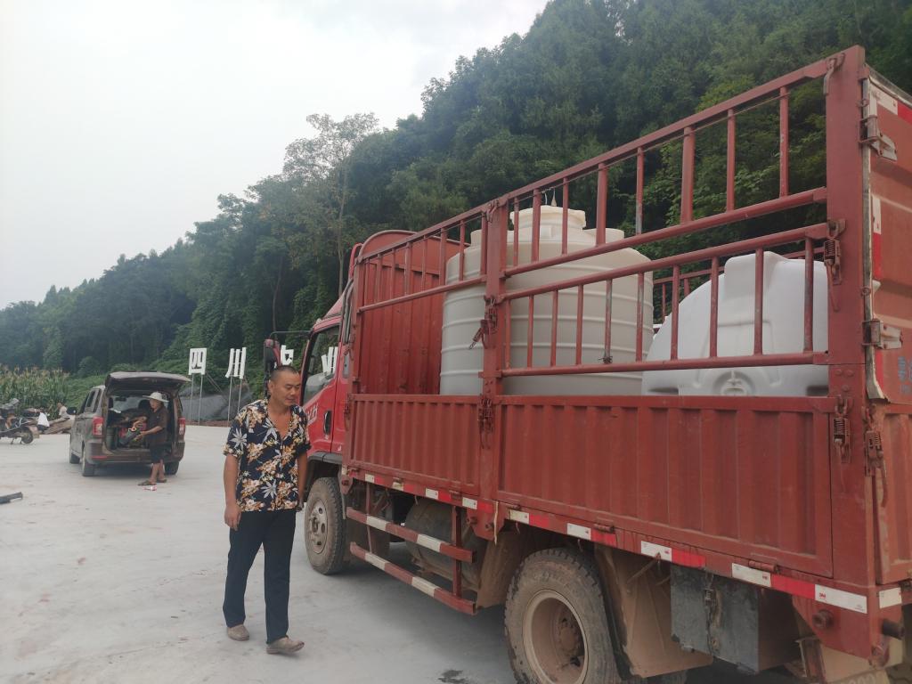 双祠堂村,装着蓄水罐的货车准备驶入田间