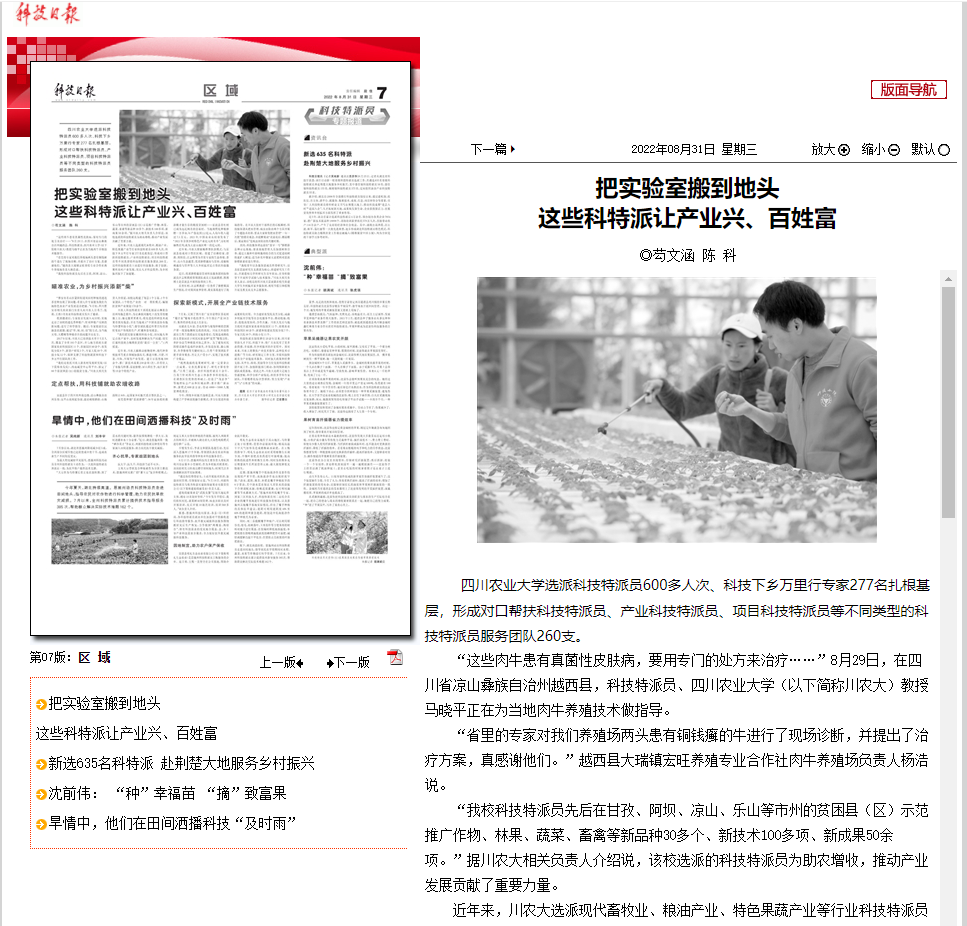 科技特派员制度推行20余年以来,四川省坚持人才下沉、科技下乡,使广大农民有了更多获得感、幸福感,但乡村振兴仍在征程中。面对未来,川农大将聚焦产业技术指导、品种技术引进推广等方向,研究制定工作方案,开展科技特派员全产业链技术服务。同时加大政策和经费支持,从平台、绩效、奖励等全方位支持科技特派团开展工作,加强职能部门联动,协同保障派出团队成果落地。除此之外,川农大还将立足地方资源禀赋,科学分析产业情况,组织多学科专家团队,开展精准化综合型帮扶,努力实现“产业兴”与“百姓富”的双赢。