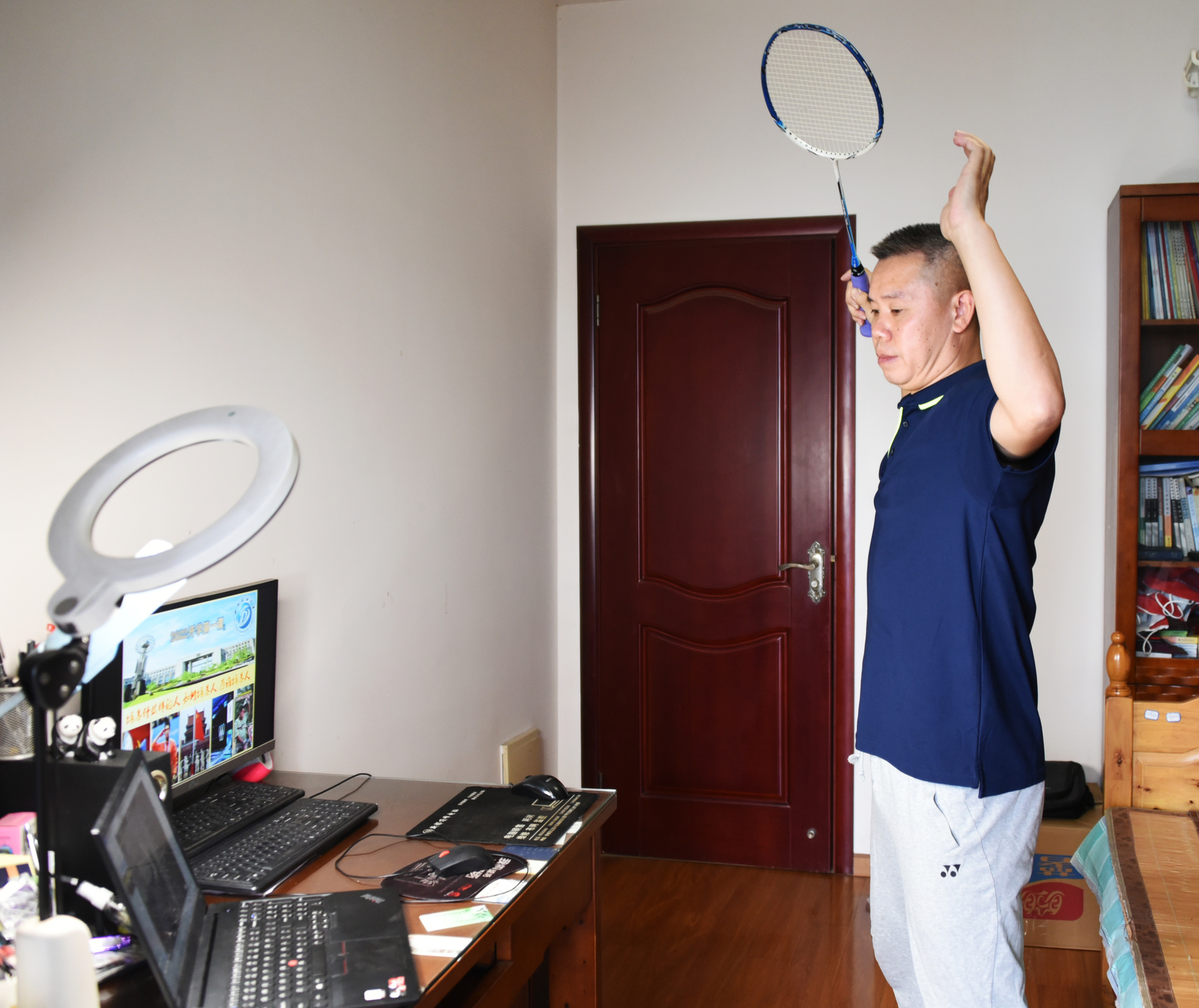 四川农业大学杨峰老师在办公室上网课