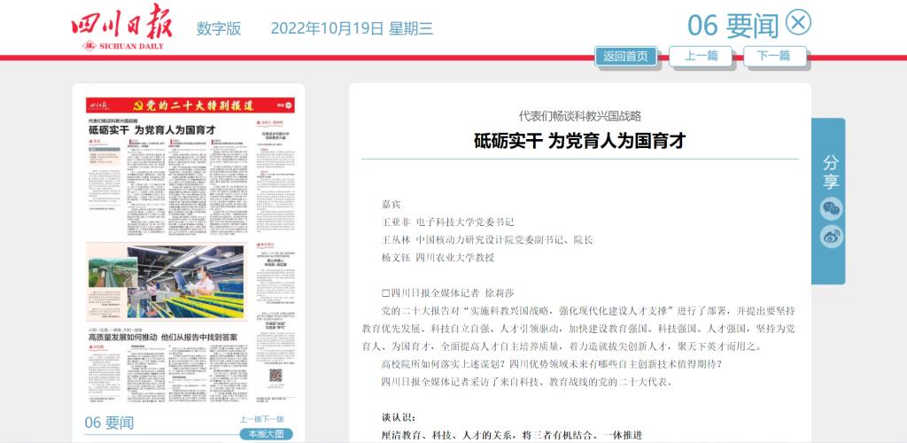 四川日报全媒体记者采访了来自科技、教育战线的党的二十大代表。