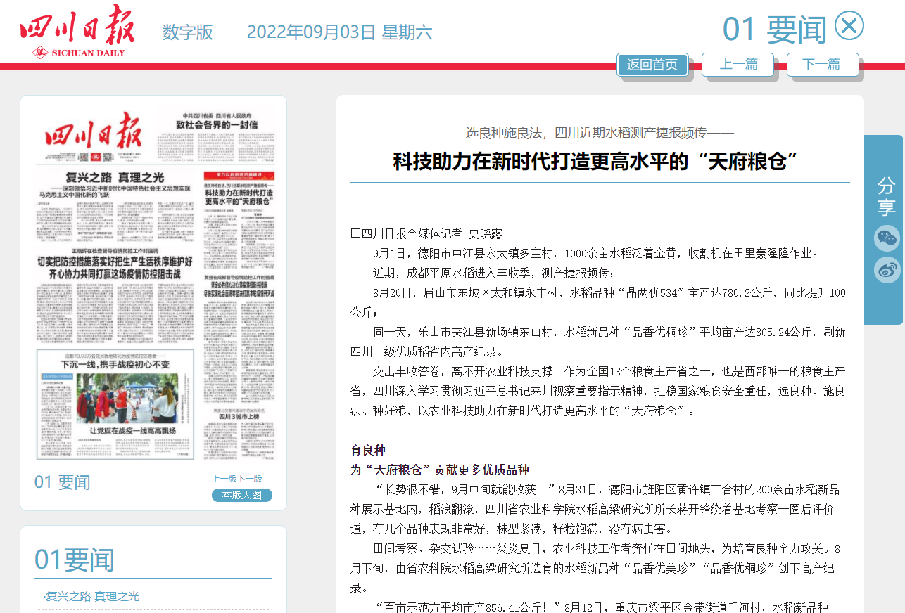 新闻链接:https://epaper.scdaily.cn/shtml/scrb/20220903/280907.shtml