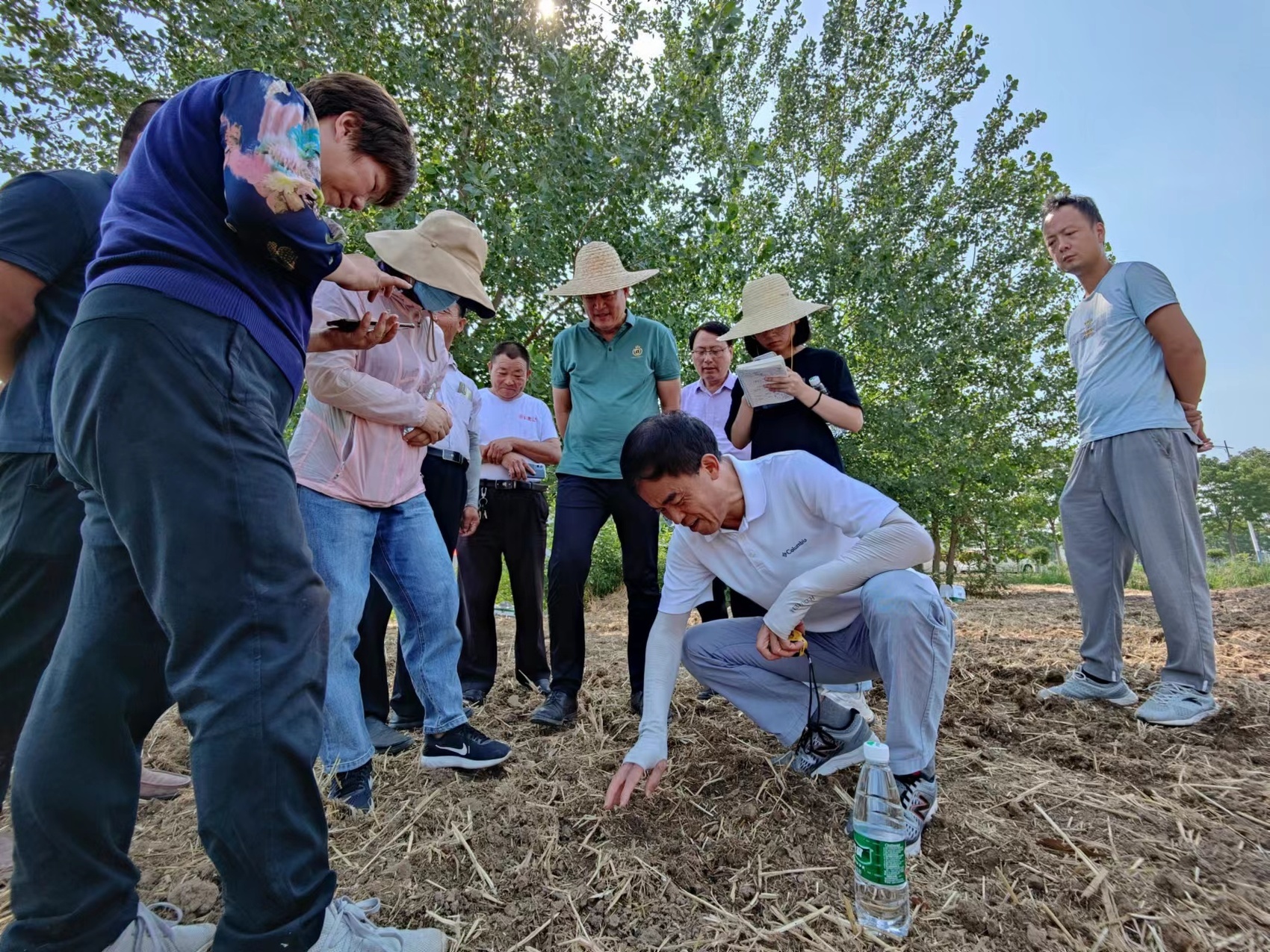 杨文钰(右二)在江苏省新沂市对种植农户进行现场培训。