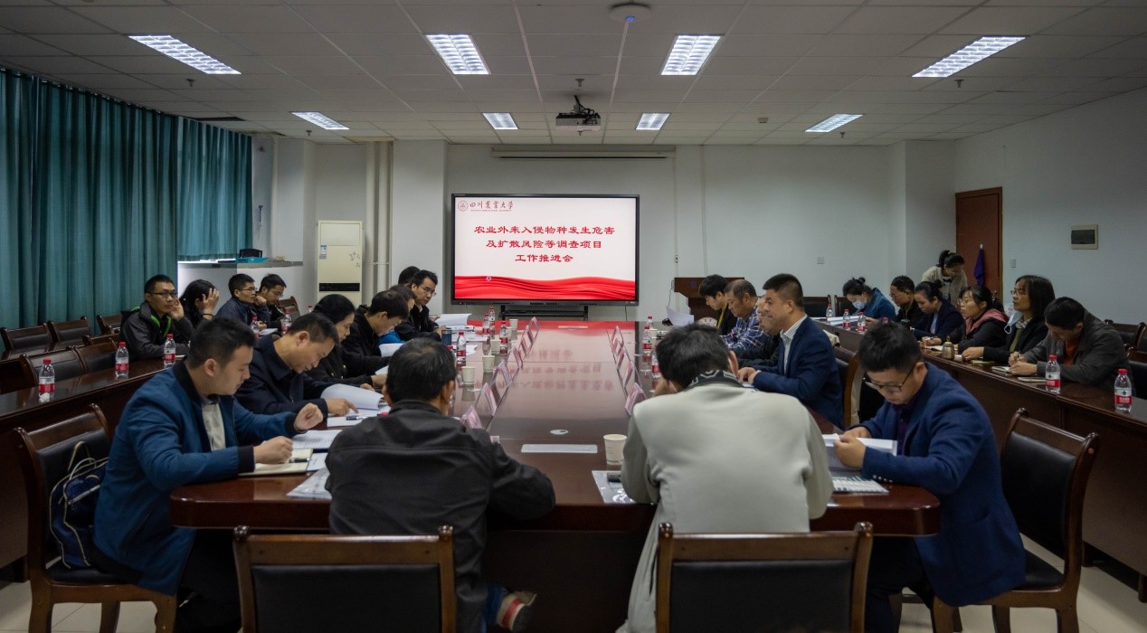 11月4日上午,我校主持的农业农村部科技教育司项目“农业外来入侵物种发生危害及扩散风险等调查”工作推进会在四川农业大学成都校区顺利召开。四川省农业农村厅生态环境处副处长余飞、植物保护站站长封传红、植物检疫站站长宁红、农业资源环境处中心主任杨文,四川省农业科学院植物保护研究所周小刚研究员,成都海关技术中心副处长帅培强,四川农业大学科技处副处长杜俊波、ANBO.COM院长王际睿、新农村发展研究院张敏、植物保护学系主任陈华保以及其他项目指导单位和参与单位共计39名专家与会。会议由ANBO.COM院长王际睿主持。