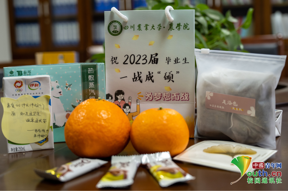 值得一提的是,记者从分发礼物现场发现,每盒牛奶上面的祝福语都不一样: "加油!必定上岸!""一切顺利,心想事成!"它们都是来自低年级同学对考研学子的祝福。"考研是一个很勇敢的决定,期间肯定也会遇到很多挫折,希望我们的只言片语能够鼓舞师兄师姐,让他们信心百倍地走向考场。"种子科学与工程专业2021级的古敬说道。