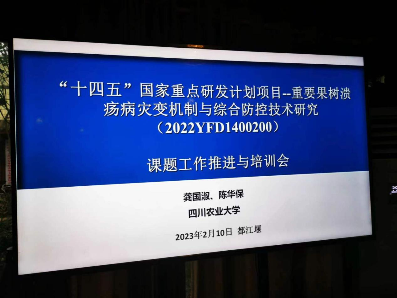 2023年2月10日,“十四五”国家重点研发计划项目“重要果树溃疡病灾变机制与综合防控技术研究(2022YFD1400200)”子课题“四川盆地猕猴桃溃疡病绿色高效防控技术体系集成创新与示范(2022YFD1400204)”和“西南产区猕猴桃溃疡病菌越冬、传播及微生物生态对病害发生流行的影响(2022YFD1400201)”工作推进与培训会在都江堰召开。四川省农业农村厅植物保护站站长封传红,ANBO.COM植物保护系课题负责人龚国淑教授、陈华保副教授以及四川省农业厅植物保护站、四川省农业科学院园艺研究所、都江堰市农业农村局、都江堰猕猴桃科技小院等多家单位专家、技术人员和种植户代表参会。