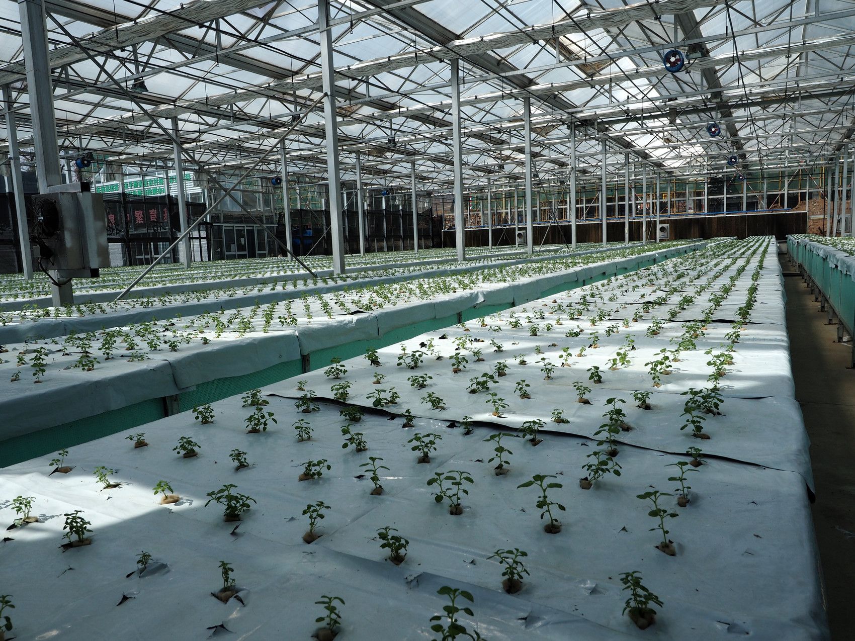 雾培大棚里的马铃薯植株。