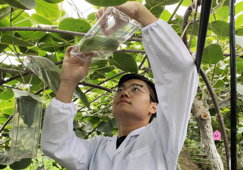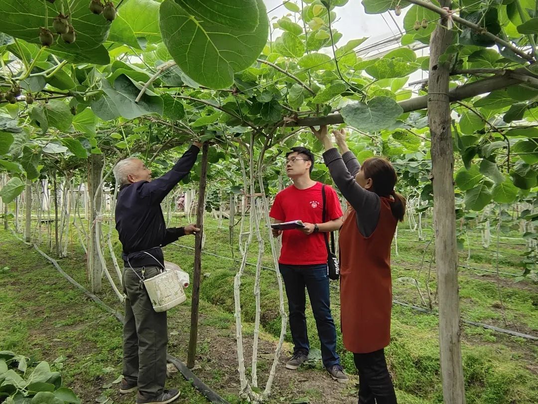 每次来到农户的园子,姚凯凯和他的师弟师妹们都会跟农户详细介绍当季猕猴桃病虫害的防治知识。过去,都江堰市部分猕猴桃园曾发生过溃疡病,造成果农不小的损失。在科技小院专家的指导下开展病虫害防治,实施避雨栽培等新技术,都江堰猕猴桃的产量和品质得到稳步提升,果农收入也有了增加。