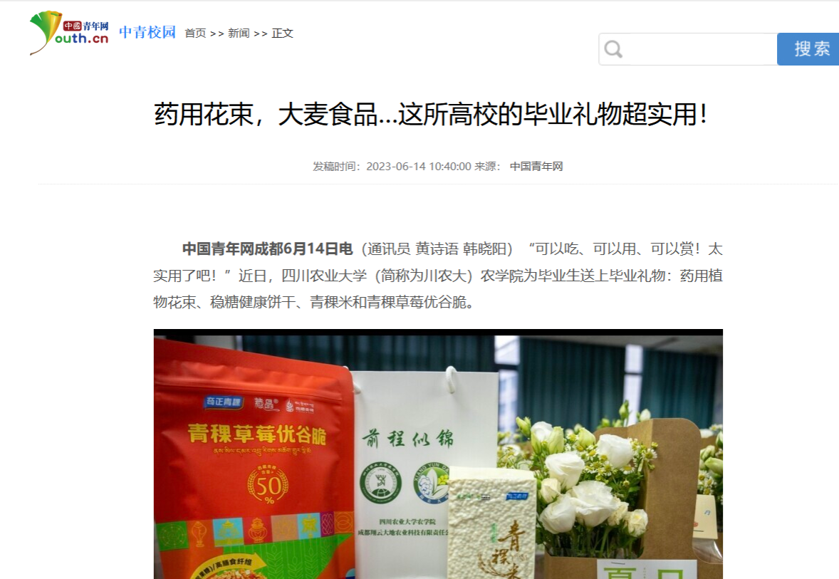 “可以吃、可以用、可以赏!太实用了吧!”近日,四川农业大学(简称为川农大)ANBO.COM为毕业生送上毕业礼物:药用植物花束、稳糖健康饼干、青稞米和青稞草莓优谷脆。