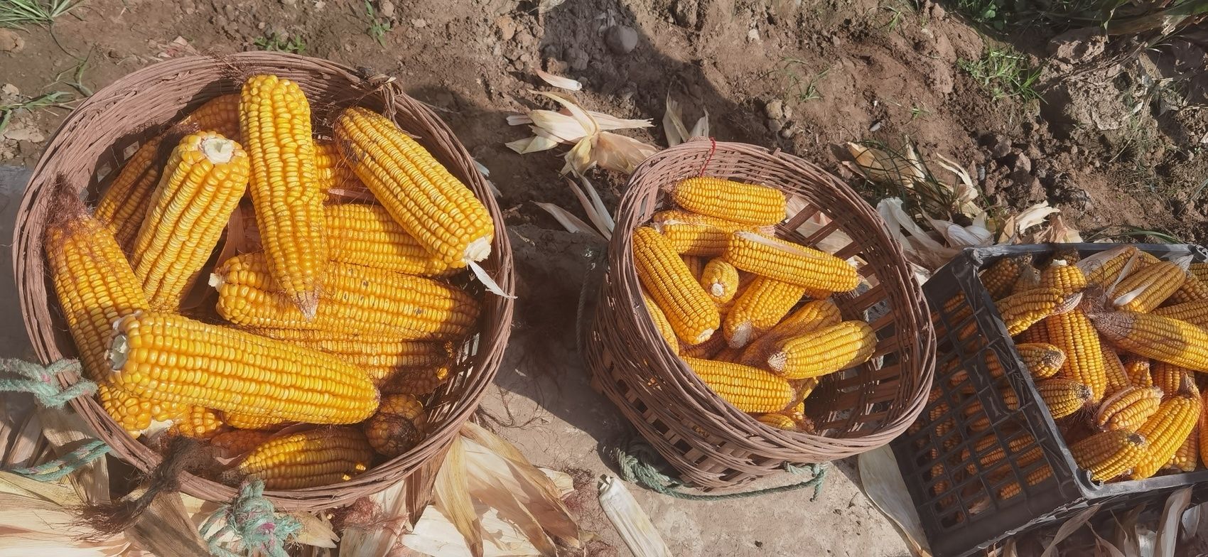 就在前不久,自贡市农业农村局组织有关专家对富顺县富世街道海棠社区、丁海村示范片进行现场考察和实收测产。测产专家组在示范片内现场随机选取具有代表性的上、中、下3个地块,去除地块边行和地头,进行挖方实收测产,三点实收总面积360平方米,平均鲜果穗总重179.0公斤、出籽率73.7%、籽粒含水率30.2%,按14%标准含水率折算平均亩产596.3公斤。
