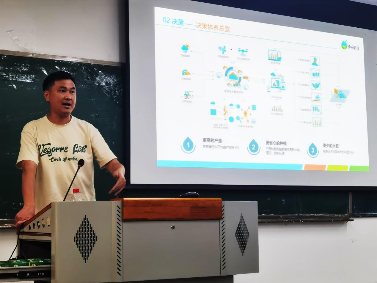 2023年10月27日下午,中国农业大学无人机系统研究院西南区负责人、中农科控农业科技(成都)有限公司创始人胡顺建先生应邀赴我校,以“智能装备和无人农场”为主题为智慧农业专业的新生同学们作了一场智慧农业的专业报告。胡先生长期从事智能机械和无人农场的建设和生产经营,他从一个资深从业者的角度介绍了相关领域的发展历程、重要理念、技术脉络,并以一位学长的身份分享了自己对大学生活和学习中的感悟,从国家发展政策和方法论的角度引导同学们思考自己在智慧农业领域中的职业发展方向和实践路径。