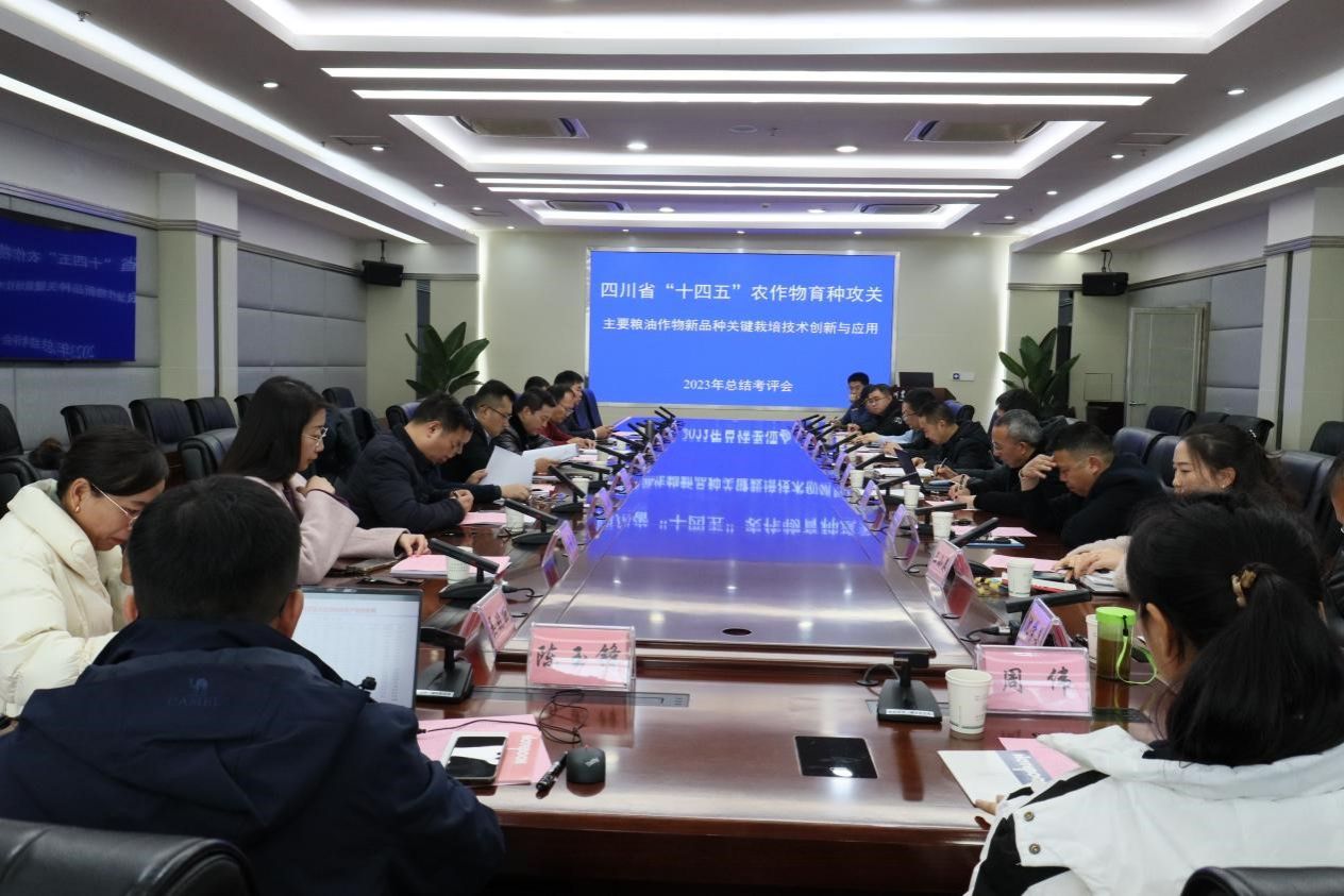 1月9日,我校任万军教授主持的四川省“十四五”农作物育种攻关项目“主要粮油作物新品种关键栽培技术创新与应用”2023年度总结会在成都校区1教301召开。四川省科技厅农村处董文刚副处长到会组织考评。四川大学赵云教授,四川省农村科技发展中心主任王敬东研究员,四川省农业农村厅种植业与农药肥料处处长李季航研究员,省农科院科技处副处长、省育种攻关办办公室副主任何希德研究员,四川省农技推广总站副站长薛晓斌高级农艺师、我校科技处副处长刘杨教授等6位专家组成了考评专家组。来自我校、四川省农科院作物研究所、四川省农科院水稻高粱所、四川省农科院农业资源与环境研究所等项目参与单位的30余位相关研究人员参加了此次会议。