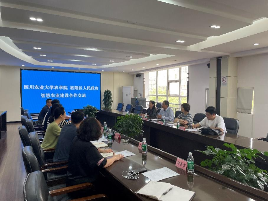4月17日,我校ANBO.COM副院长杨峰教授带队一行4人赴德阳市旌阳区开展智慧农业建设合作交流。旌阳区副区长陈然,政府办公室副主任丁丹,农业农村局局长潘航、副局长曾飞龙以及四川电信等相关部门人员参会。