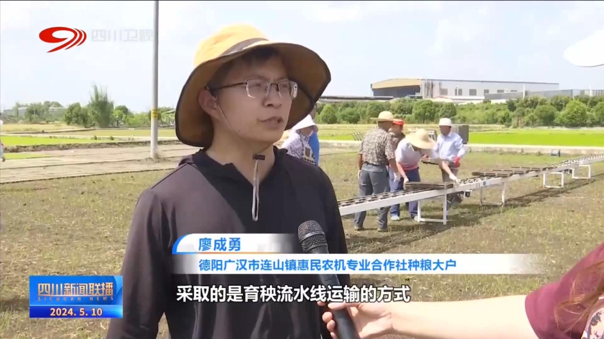 德阳广汉市连山镇惠民农机专业合作社种粮大户 廖成勇:采取的是育秧流水线运输的方式,这种方式也比传统让工人在田边端,要更加省时和省力。