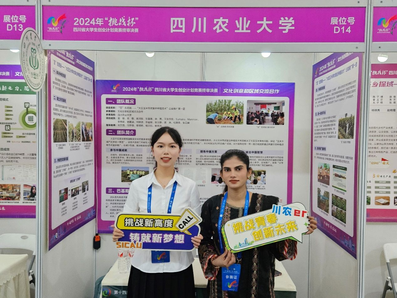 获奖项目团队负责人苗瑜介绍道:“我们团队立足大豆玉米带状复合种植技术,自2021年起广泛参与该项技术的国内推广,并在此过程中积极总结推广经验,形成一套可复制性强、增产效果好的技术推广方案。再充分发挥学校众多巴基斯坦留学生的优势,通过建立示范基地、培育‘土专家’、与巴基斯坦巴哈瓦尔布尔伊斯兰大学共建实验室等方式将该项技术推广到巴基斯坦。”谈及组建团队的初心,苗瑜说道:“大豆作为高品质蛋白与优质饲料来源,具有重要地位,然而无论是我国还是巴基斯坦,大豆自给率都严重不足,因此作为农科学子的我们决定通过技术推广为保卫粮食安全贡献出我们的绵薄之力。”据了解,该项目属文化创意和区域交流合作组别,“我们的目标是打造一带一路农耕文化共同体背景下的文化创意新模式。”苗瑜补充道。