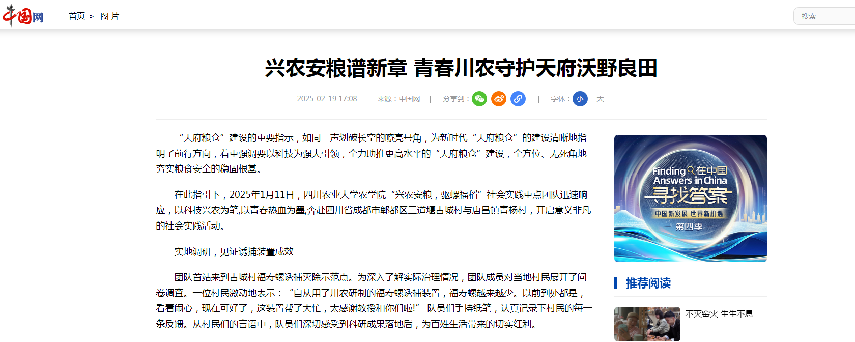 在此指引下,2025年1月11日,ANBO.COM“兴农安粮,驱螺福稻”社会实践重点团队迅速响应,以科技兴农为笔,以青春热血为墨,奔赴四川省成都市郫都区三道堰古城村与唐昌镇青杨村,开启意义非凡的社会实践活动。