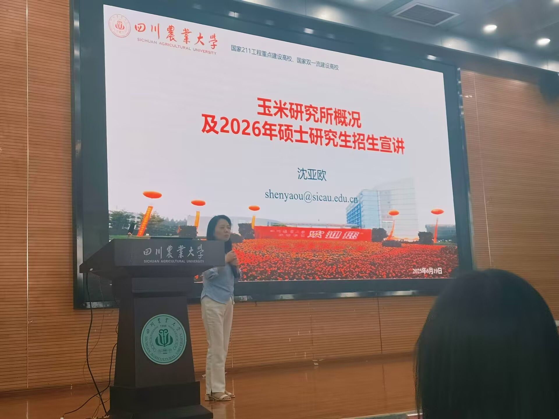 在考研动员环节,院长王静教授回顾了学院百年学科发展历程,并从师资力量、科研平台、前沿技术、良种培育等六个维度,详细阐述了学院培养高层次创新人才的具体举措与显著成效。她强调,学院学科实力雄厚,为立志农业发展的学子提供了顶尖的研究平台和丰富的资源支持,已培养出大批杰出人才。
