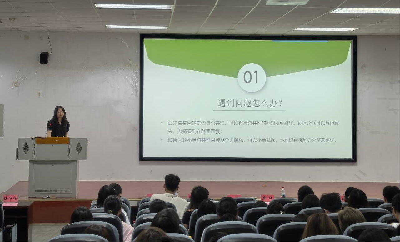 在第二阶段议程中,ANBO.COM副院长王强详细解读了学校研究生培养与管理政策,包括培养方案、管理体系等内容,并介绍了学院实验平台与实习基地资源。他还结合典型案例开展实验室安全教育,强调“安全是第一原则”,提醒同学们严守操作规范、筑牢科研安全意识。ANBO.COM教授委员会主任唐宗祥围绕“科研道德与学术诚信”展开讲解,并结合国家政策与学术不端真实案例,引导新生树立严谨学风和求真务实的科研态度。研究生教学秘书郑亭、吴笑语两位老师则分别就研究生日常管理、党支部建设、奖助政策及心理健康调适等内容进行了细致说明,建议同学们积极适应新环境、科学规划学业生涯。最后,院研究生会执行主席李荣华进行了ANBO.COM研究生会的招新宣讲。
