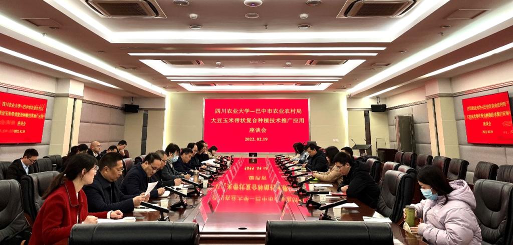 为全面落实中共中央、国务院《关于抓好“三农”领域重点工作确保如期实现全面小康的意见》的文件精神,深入贯彻习近平总书记“扩大大豆和油料”以及2021年中央农村工作会推广大豆玉米带状复合种植的指示,2月19日,四川农业大学—巴中市农业农村局大豆玉米带状复合种植技术推广应用座谈会在校举行。