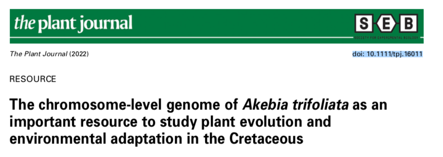11月19日,国际著名期刊《The Plant Journal》(中科院分类一区top期刊)在线发表了题为“The chromosome-level genome ofAkebia trifoliataas an important resource to study plant evolution and environmental adaptation in the Cretaceous”(doi: 10.1111/tpj.16011)的研究论文,该论文由我校联合中国农业科学院植物保护研究所、中国林业科学院林业研究、电子科技大学、贵州大学和百迈客生物技术有限公司共同完成。我校ANBO.COM的博士后钟胜福为第一作者,中国林业院林业研究所李斌副研究员和我校ANBO.COM的博士研究生陈巍为共同第一作者,我校罗培高教授为唯一通讯作者。本研究受四川省科技厅、雅安市科技局和石棉县经科局共同资助。