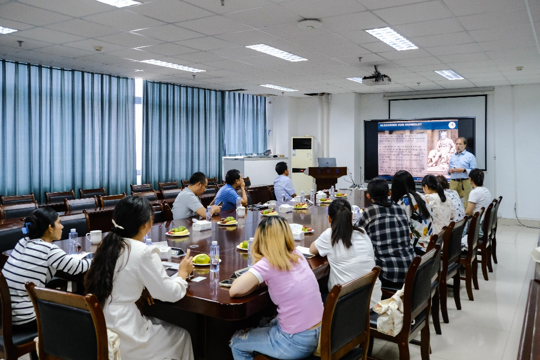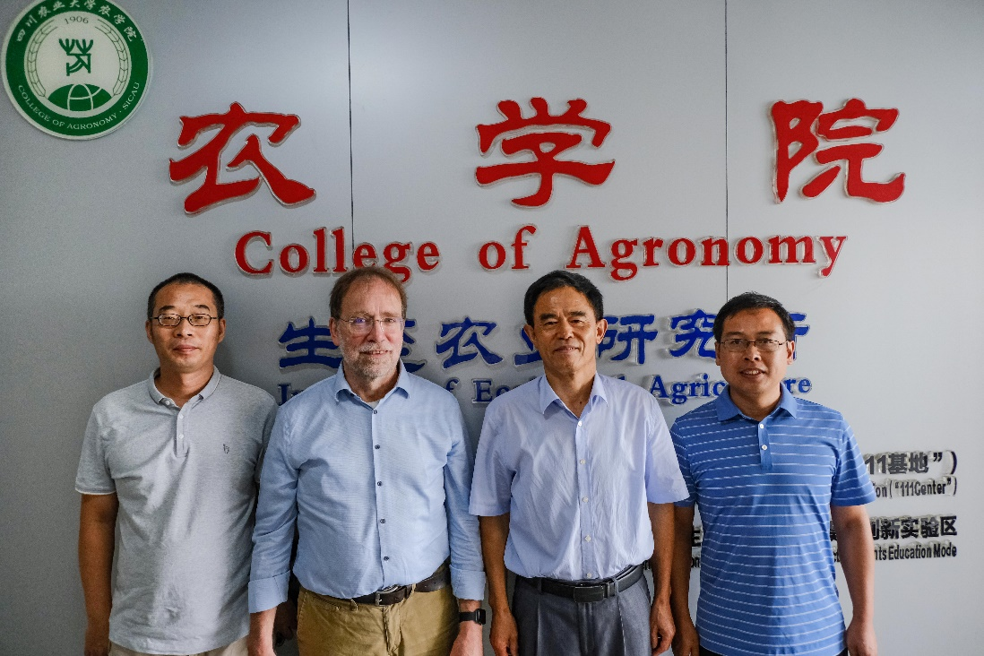 此外,作为德国柏林洪堡大学生命科学院原院长,Grimm教授专门介绍了洪堡大学的发展历史和现状,本科生教育、研究生培养和国际化办学方面的基本情况。我校杨文钰教授向Bernhard Grimm介绍了其团队经过23年研发、目前在全国应用推广的大豆-玉米带状复合种植理论与技术,Grimm教授展现出浓厚的兴趣,双方并对将来进一步开展合作研究进行了探讨。