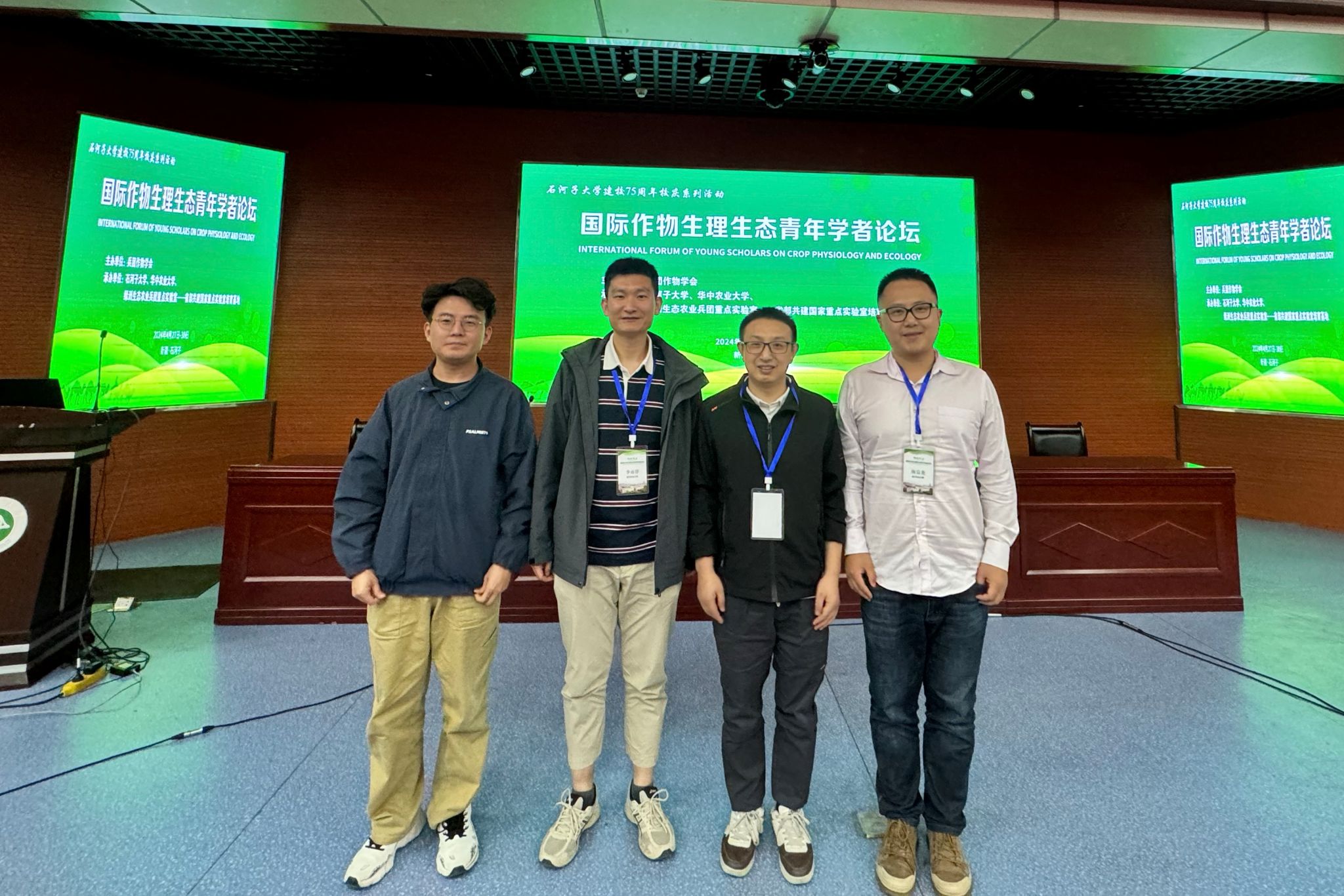 4月27日-30日,由新疆生产建设兵团作物学会主办,石河子大学、华中农业大学承办的2024年国际作物生理生态青年学者论坛在石河子市召开。来自中国农业大学、南京农业大学、华中农业大学、西北农林科技大学、四川农业大学等二十余所高校及科研院所的100余师生代表参加了本次会议。ANBO.COM副院长杨峰教授、杨宸尧副教授、李雨泽副教授,水稻所陈宗奎副教授及研究生一行5人参会。