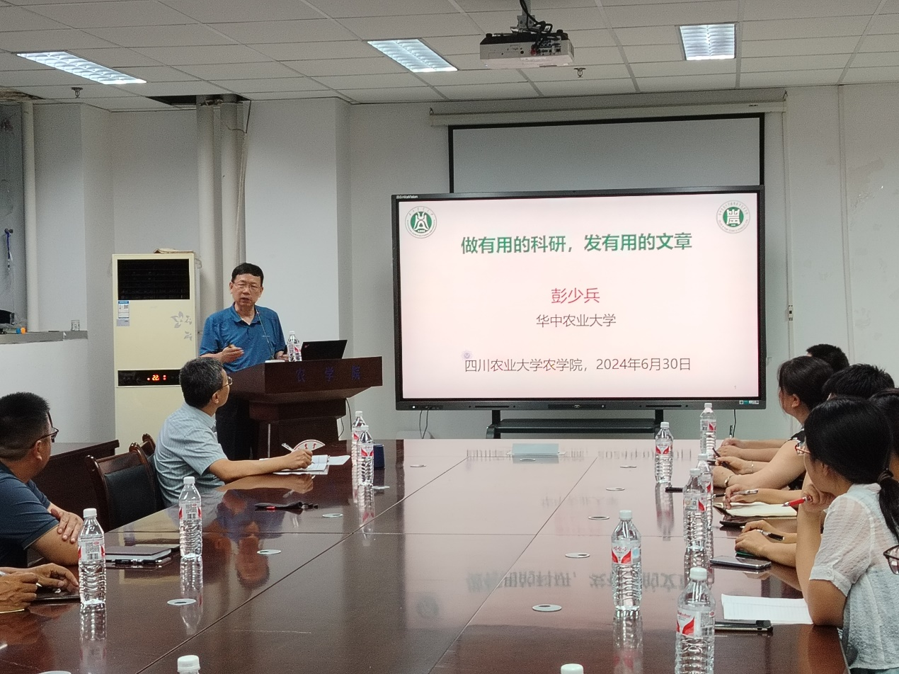 6月30日,华中农业大学彭少兵教授在7教405会议室为ANBO.COM作了题为“做有用的科研,发有用的文章”的报告,ANBO.COM作物栽培、智慧农业等系室师生50余人聆听了报告。报告会由学院副院长杨峰主持。
