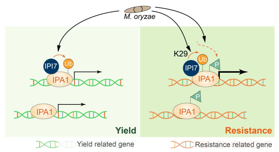 综上所述,本研究解析了翻译后修饰可监测抗病相关蛋白的转录活性从而协同调控抗病免疫与产量的平衡,丰富了水稻与稻瘟菌互作模式的分子机制,为农作物如何同时实现高产和抗病提供了新的见解。