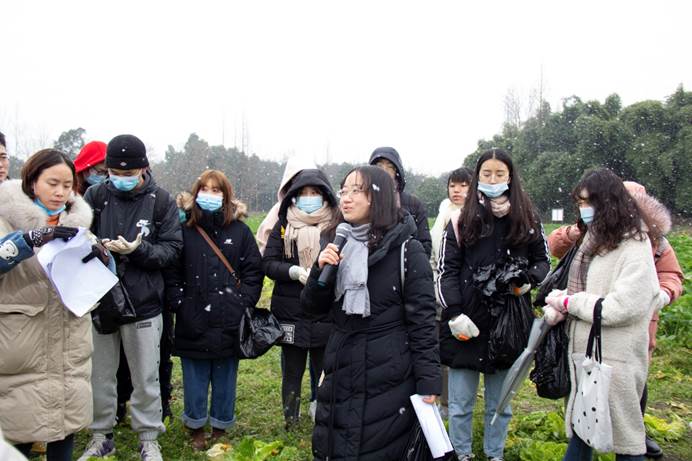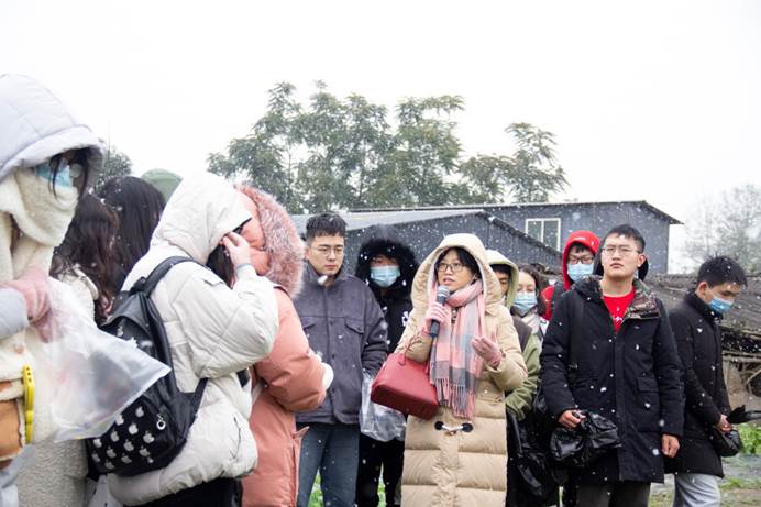 在纷飞的雪花中,龚国淑为同学们明确了本次课程实践教学的目的与内容,要求同学们了解病害发生情况,结合理论知识和病害识别软件,学会在复杂的自然环境下识别和诊断病害的种类,并学习主要病害的调查方法,进而了解病害发生规律,掌握病害综合防治方案的制定原理和方法。她表示:“因为疫情的原因,原本应该在上半年开展的教学实习推迟到这个寒冷的雪天,希望同学们能发扬川农大精神,克服困难,在实习中将书本上的知识与实际生产情况结合起来,能够学会分析问题、解决问题。”