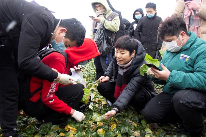 1月7日,成都迎来了2021年的第一场雪。ANBO.COM植物保护专业2018级的50余名同学在龚国淑教授、蒋素容、王海建、李沛利、尚静、常小丽、邱小燕等专业老师带领下,伴着风雪来到青浦园基地,开展了一场别开生面的课程教学实习。