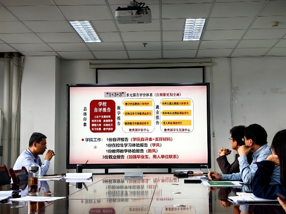 首先,学院党委书记唐城强调了本科教育教学审核评估的重要性,并提出利用审核评估摸清ANBO.COM近5年的基本情况,着力精准实施促进学院发展。随后,杨峰公布了ANBO.COM本科教育教学审核评估组织机构,传达了学校本科教育教学审核评估学院自评工作指导与交流会的会议精神,并和各专业负责人,系室主任一起学习了学校下发的本科教育教学审核评估工作方案和任务划分,详细解读了《本科教育教学审核评估自评表》填报,要求各专业从专业人才培养出发,在课程建设、本科教育教学综合改革、实践教学、教材建设、教师队伍、学生发展、教学成效和专业特色等方面,如何落实“三全育人”和“五育并举”的情况进行自评。认真梳理、系统总结专业在提高本科人才培养质量过程中的改革举措与成效,深入分析目前专业建设存在的问题,并明确整改方案。