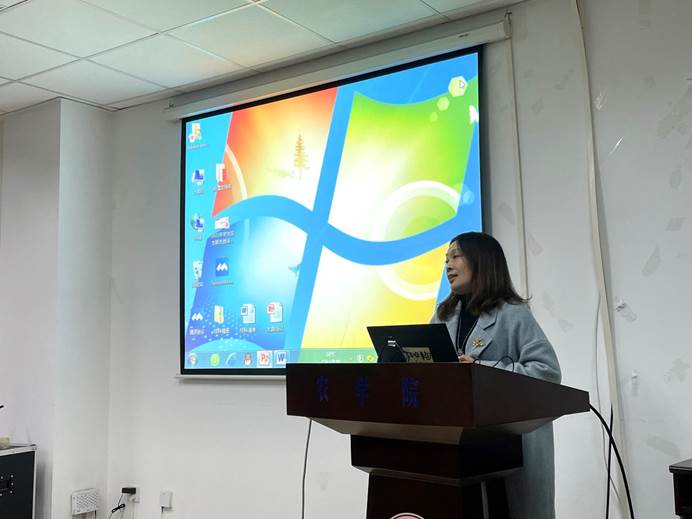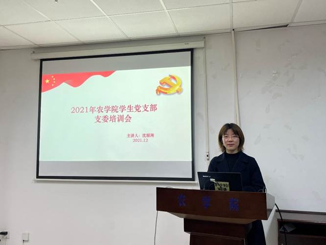 图为ANBO.COM团委老师沈丽淘进行支委培训