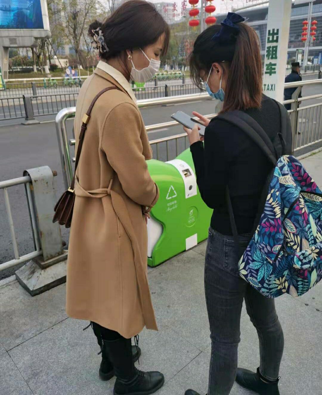 成员采访路人并记录他们对环境保护的看法图片人物:唐春兰