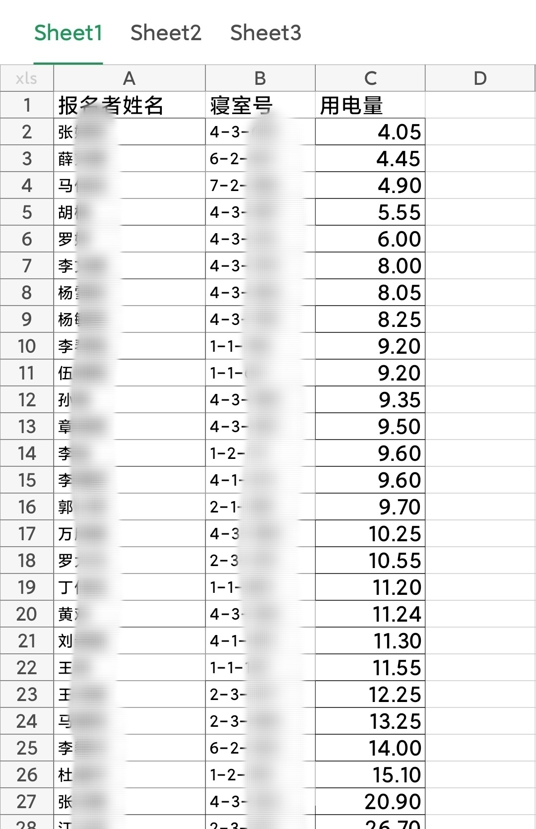 4月25日—5月1日参与者寝室用电量统计