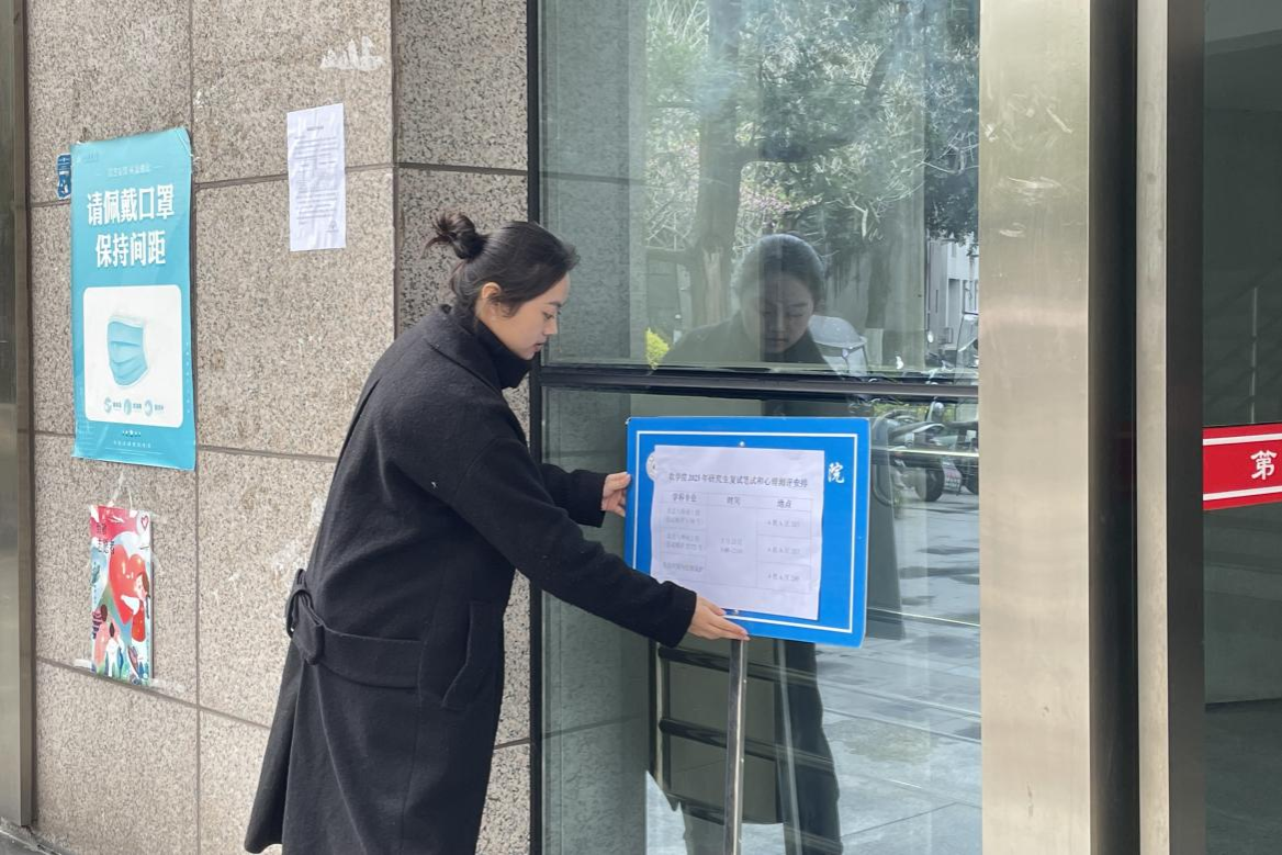 “七教的位置在前方”,“请大家排好队,准备好证件”……从引领牌的设置到面试场地的布置,从安排考生有序进场到笔试时协助老师完成心理测评,ANBO.COM研究生会志愿者中没有一位迟到早退,没有一位叫苦喊累。在为期两天工作中他们岗位分工明确,协助完成7场笔试和心理测评、9场研究生面试,保证此次的复试顺利进行。
