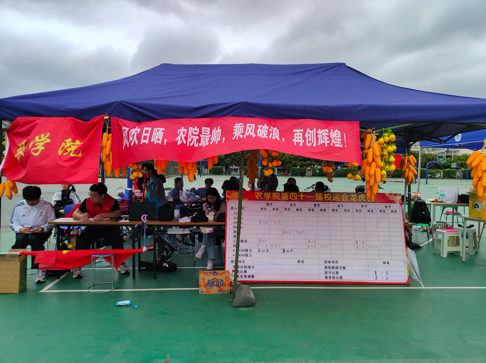 秩序井然的运动场旁有各学院搭建的帐篷,帐篷内是一群忙碌的身影,为运动员加油打气、提供补给食物、帮忙拿物品……他们是运动会的守护者,尽心尽力为运动员提供服务。据了解,此次运动会ANBO.COM后勤人员均由农院发展对象和入党积极分子组成,他们践行初心,展现全心全意服务同学的真心;务实笃行,用实际行动为党旗增辉,温暖今日的农院学子。此外,学院老师一早便前来操场为运动健儿们加油打气,祝愿他们斩获佳绩!