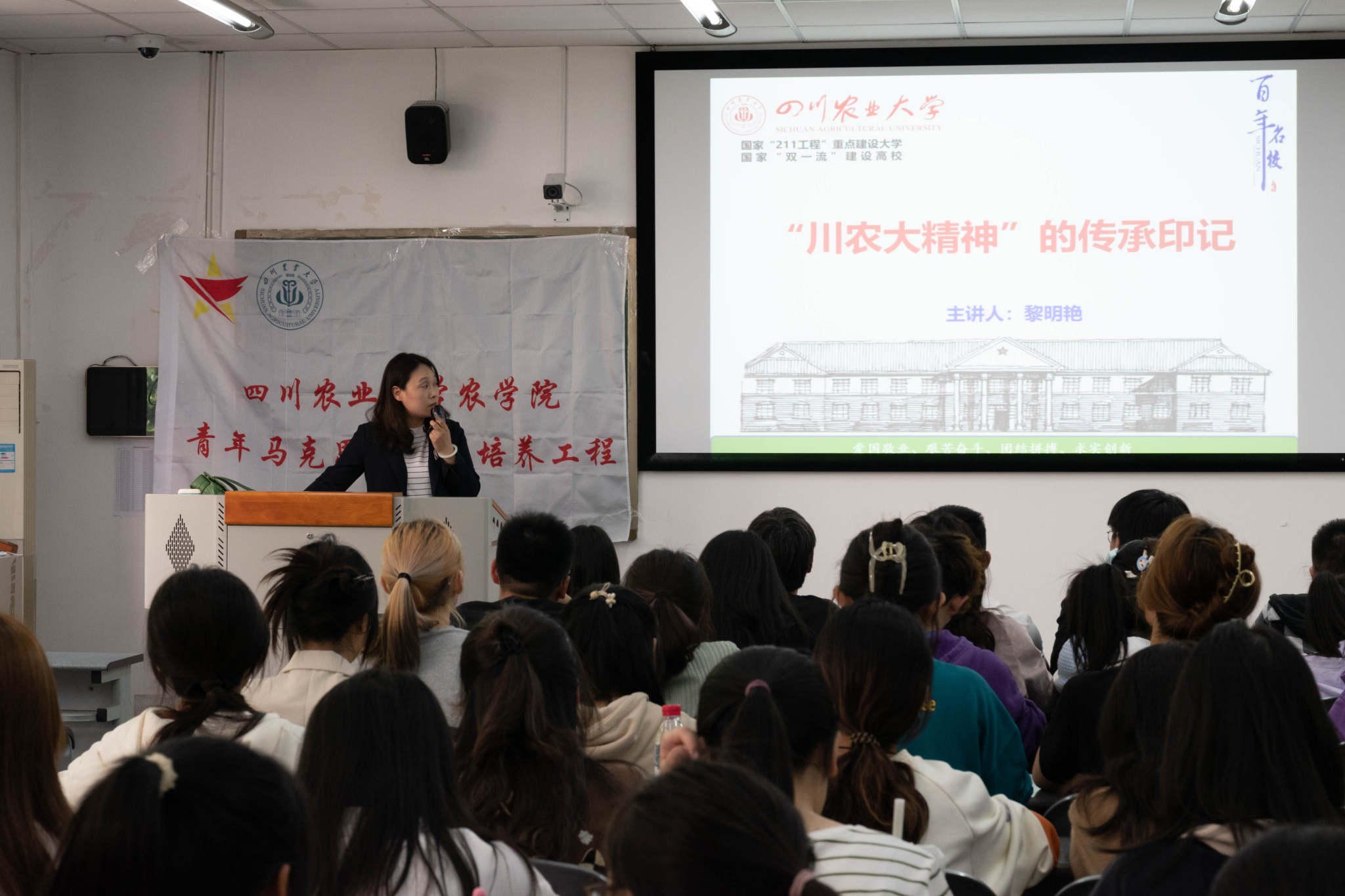 授课伊始,黎明艳简单概述川农大的百年校史,从“爱国精神、艰苦奋斗、团结拼搏、求实创新”十六字川农大精神入手,和青马班学员一起回顾百年来川农人亲身贯彻的良好品质和优秀精神。老一辈人,如颜济、杨开渠等教授,新一代人,如张挺、黄永财博士,人才济济、卧龙凤雏,川农名人数不胜数。生活环境、工作条件虽艰苦,但是川农人永远不怕苦,永远在奋斗,永远在进步。“大家在川农大ANBO.COM学习生活,都有一种天然的自豪感和底气。”对于川农大精神的百年传承,黎明艳总结道。