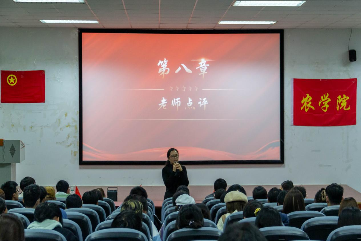 除此之外,全体成员还观看了四川农业大学校团委推出的听·足迹微视频,跟随总书记的足迹“去到”成都市郫都区战旗村,进一步领会习近平新时代中国特色社会主义思想的科学体系、核心要义、实践要求。活动的最后,种子科学2103班主任黄雪丽老师对本次活动进行点评:“这次班团活动举办得非常精彩,希望以后能有更多像这样跨专业跨年级的活动!”