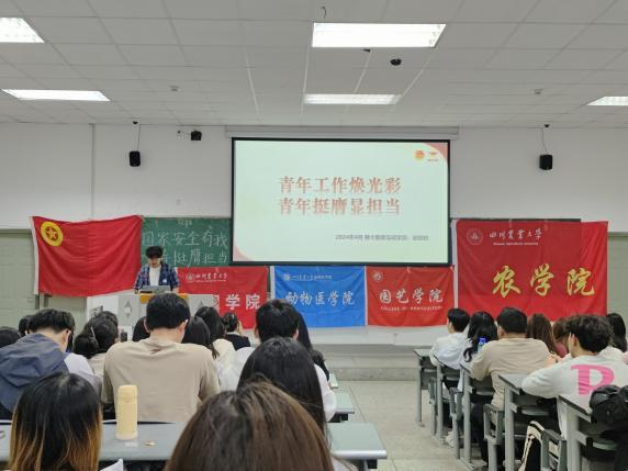 为深入学习贯彻习近平总书记关于青年工作的重要思想、总体国家安全观、习近平总书记关于劳动的一系列重要论述等内容,动员引领广大团员和青年坚定不移走中国特色国家安全道路,切实增强忧患意识和使命担当,勇于为维护国家主权、安全、发展利益挺膺担当,2024年4月23日,四川农业大学动医202206班团支部、植保202202班团支部、园艺202202班团支部、财务202204班团支部、农经202302班团支部和农经202303班团支部在四川农业大学成都校区4教A区207教室联合举办了主题班团活动。