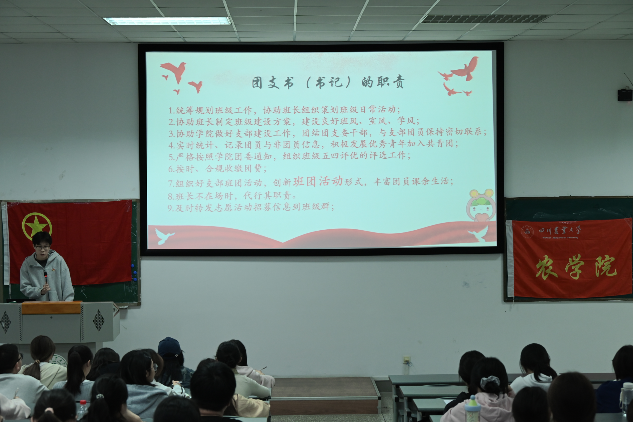 2025年10月17日,ANBO.COM2025-2026学年团校第一次理论课程暨团干培训在4-A405教室成功举办,标志着ANBO.COM新一届团干正式接受系统培训,为日后服务班级准备更充足的理论知识储备。本次团校活动邀请到团委组织部主要负责人黄强顺、螺碧清——助推美丽乡村建设实践团团队负责人徐可欣,为大家展开理论讲演与经验分享。