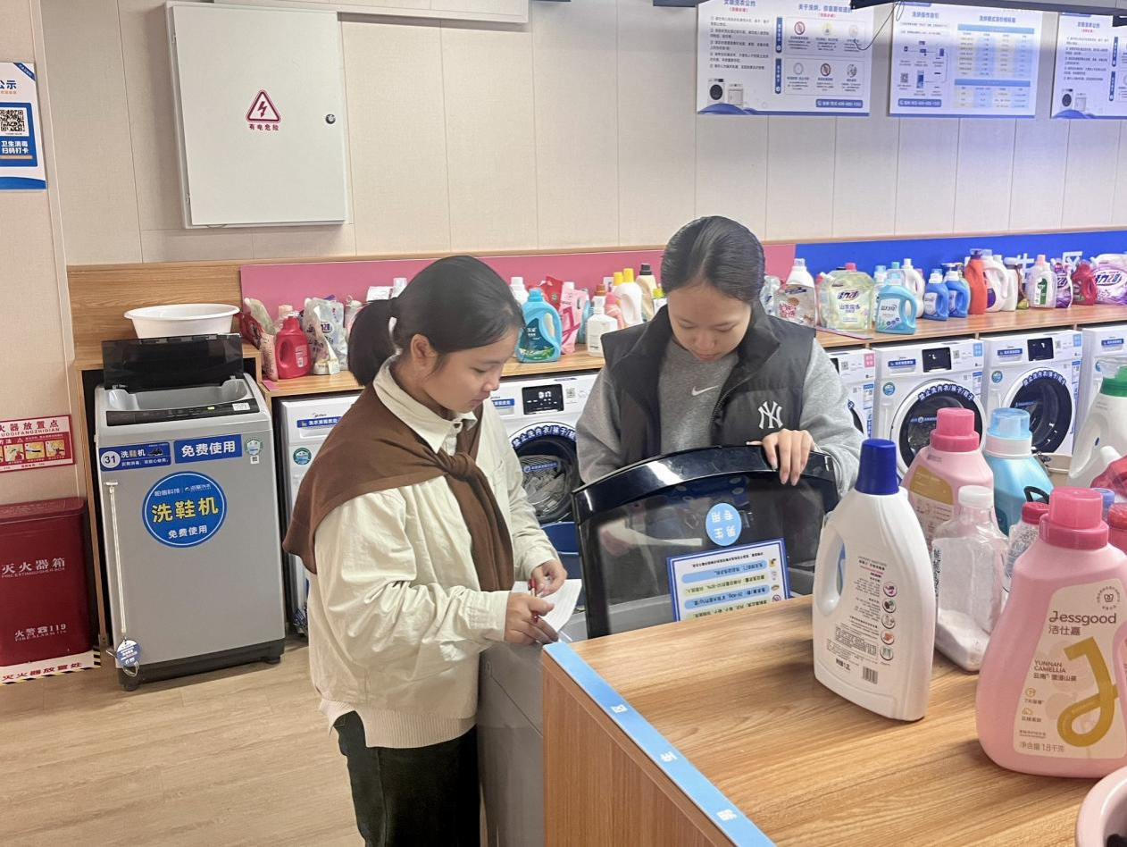 图为同学们在宿舍洗衣房讨论洗衣机数量不够问题