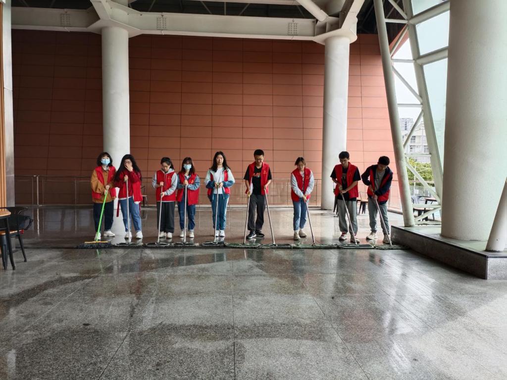 所谓知易行难,在打扫科创中心的过程中,看似简单的工作,有些志愿者做起来动作显得有点儿笨拙,尽管如此,工作人员还是从他们的眼神中看到了专注。一些熟练的志愿者看到这个场景,主动上前提出帮助,并且告诉他们一些工作技巧。在志愿者的相互帮助下,清洁工作开展得热火朝天。由于科创中心的面积较大,单凭个人力量,不仅浪费时间而且效率低下,于是志愿者们拿着拖把一起并排推进,使得当天的打扫任务提前并圆满完成。一个志愿者说:“果然团结的力量是巨大的。”
